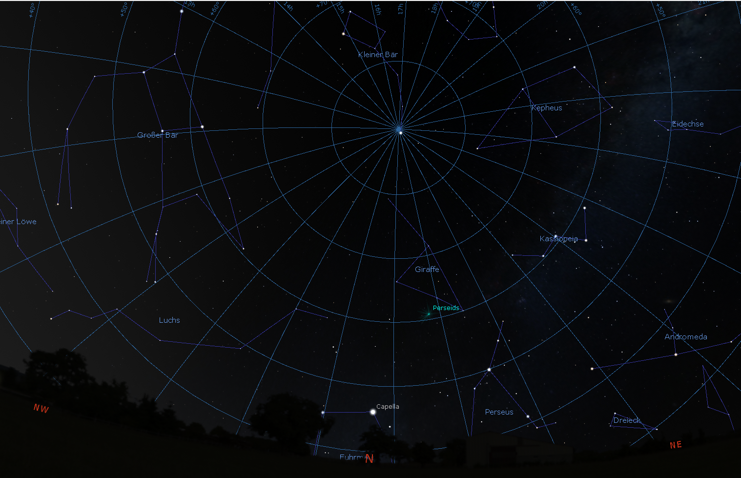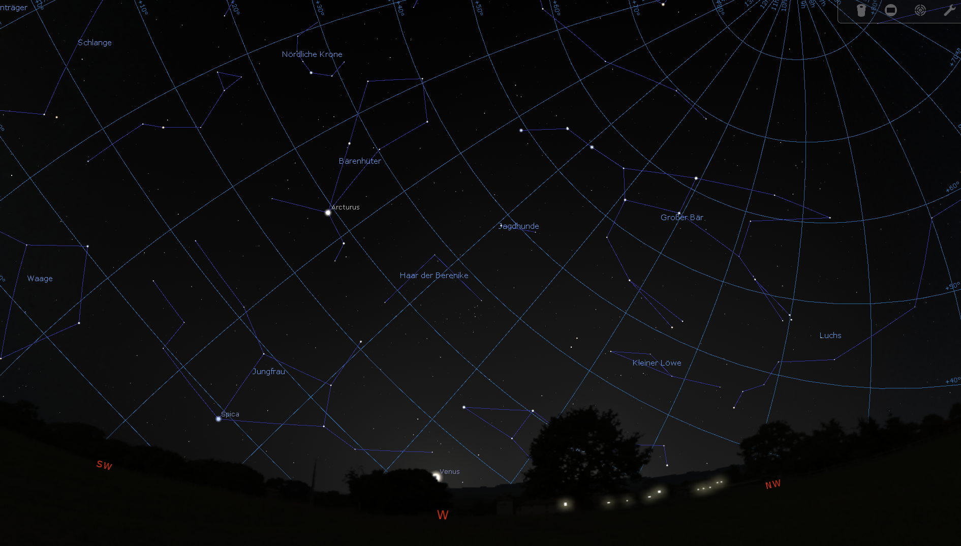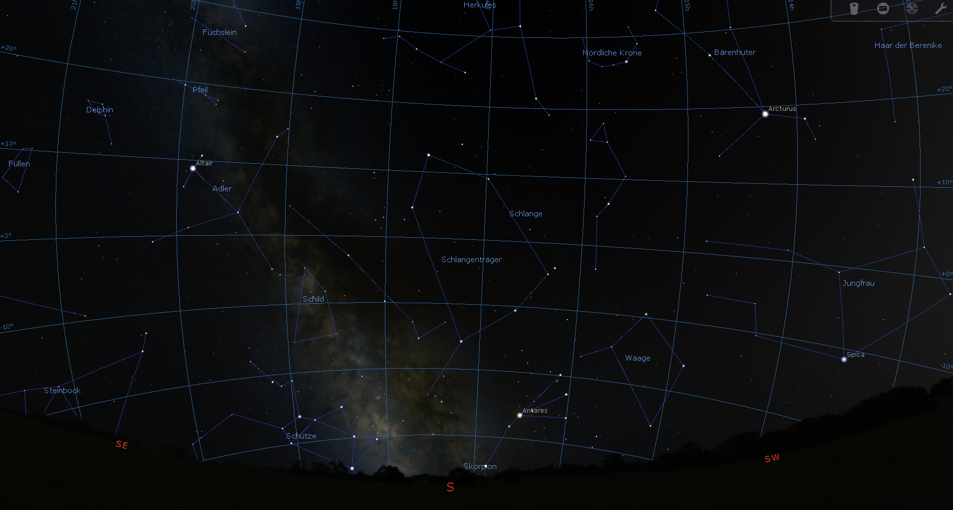 zu einer bestimmten Zeit bietet die Software Stellarium