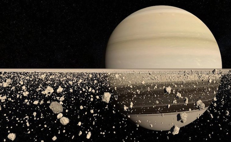 und einer Vielzahl von Monden, darunter Titan mit einer dichten Atmosphäre und